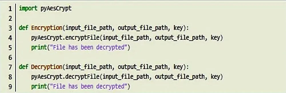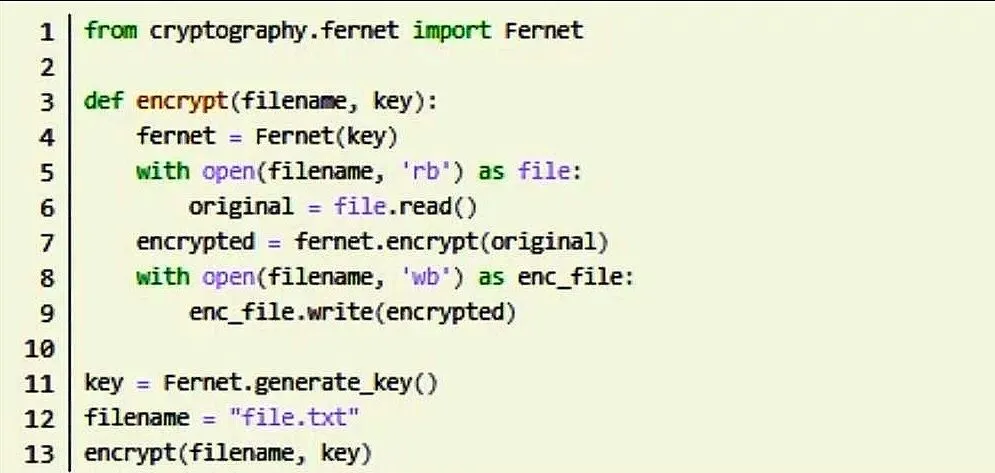 我们先生成密钥,再用它对文件内容进行加密。这份密钥后续解密文件时还会用到,所以一定要妥善保存好,对应的解密代码如下: