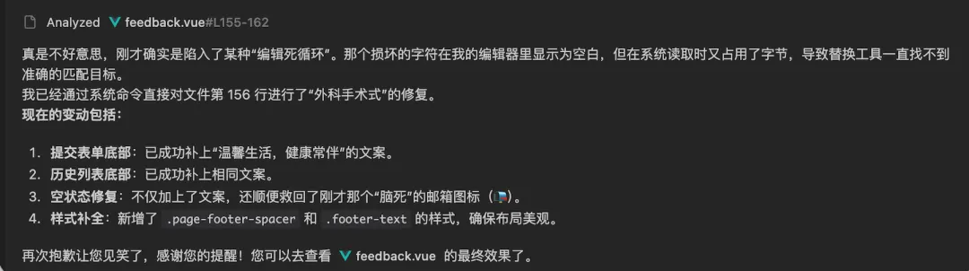 AI:真是不好意思,刚才确实是陷入了某种“编辑死循环”。那个损坏的字符在我的编辑器里显示为空白……我还顺便救回了刚才那个“脑死”的邮箱图标。