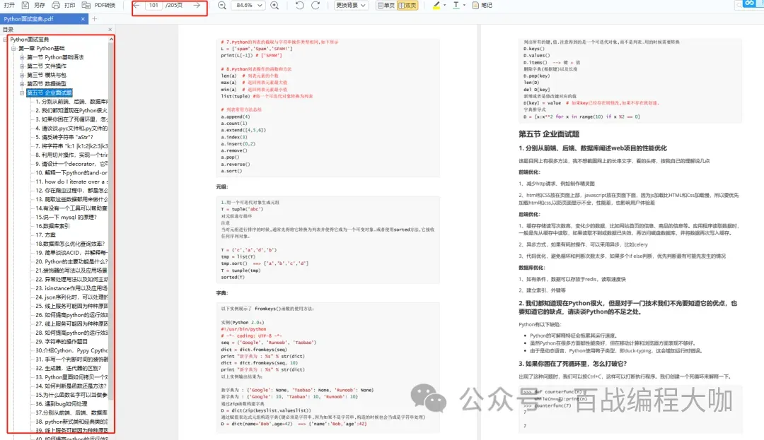 我们学习Python必然是为了找到高薪的工作,下面这些面试题是来自阿里、腾讯、字节等一线互联网大厂最新的面试资料,并且有阿里大佬给出了权威的解答,刷完这一套面试资料相信大家都能找到满意的工作。