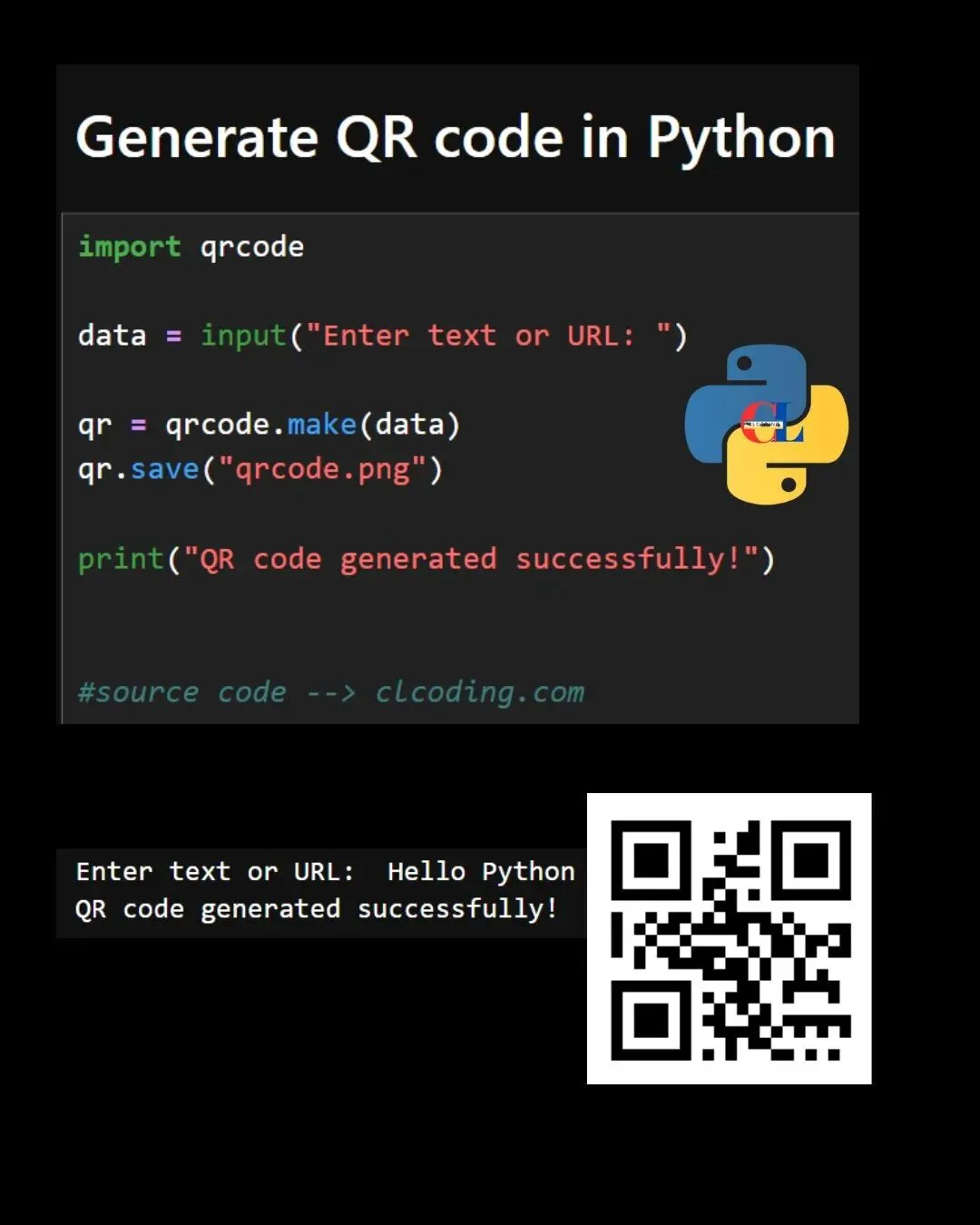 import qrcodedata = input("Enter text or URL: ")qr = qrcode.make(data)qr.save("qrcode.png")print("QR code generated successfully!")让我们逐行拆解这个“魔法”: