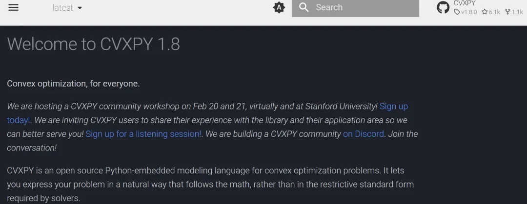 CVXPY 的官方文档位于 cvxpy.org。