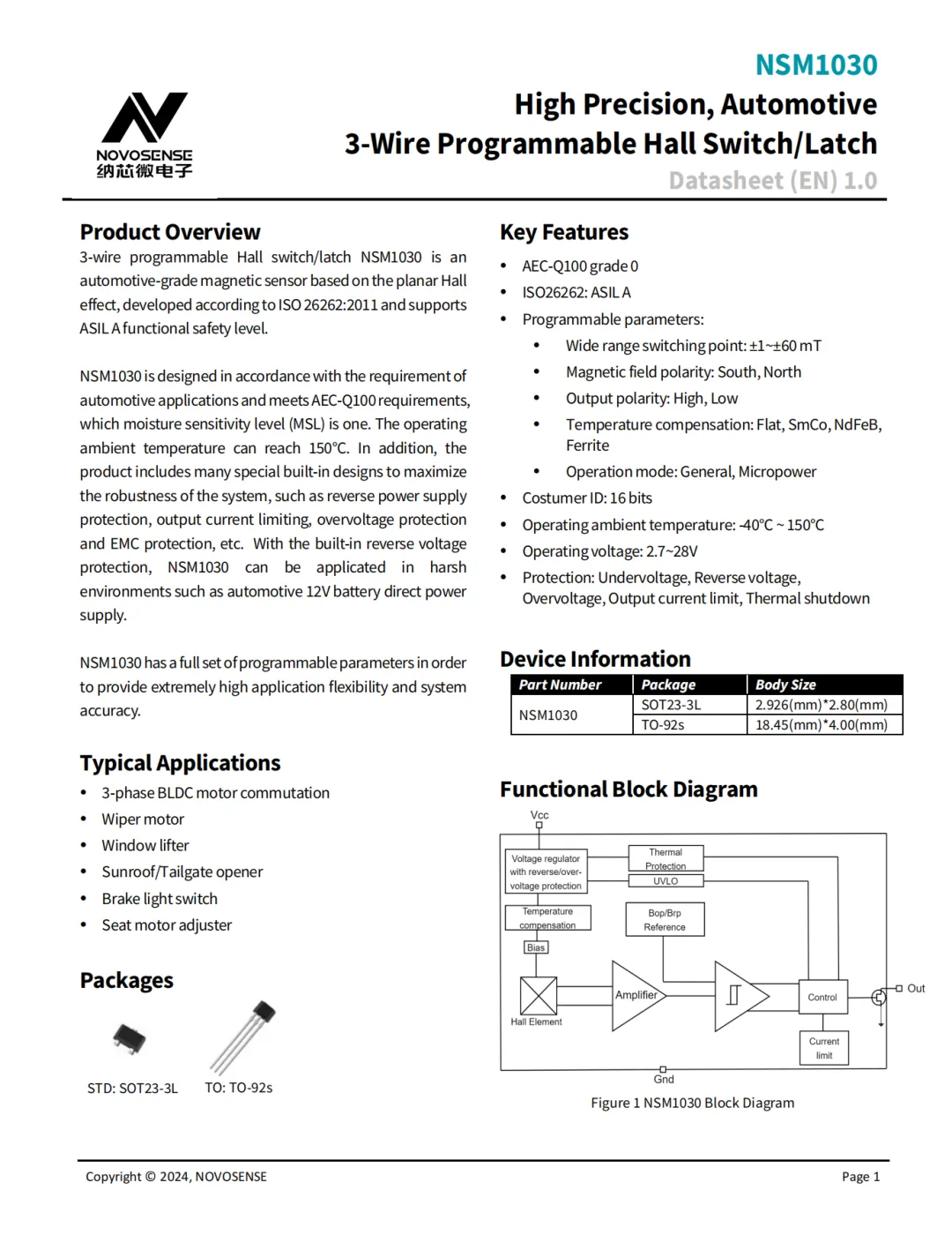 免责声明:本文基于纳芯微 NSM1030 Datasheet (Ver 1.0) 编写,仅供技术选型参考。实际设计参数(特别是磁场匹配与编程电压时序)请务必以官方最新发布的数据手册为准。