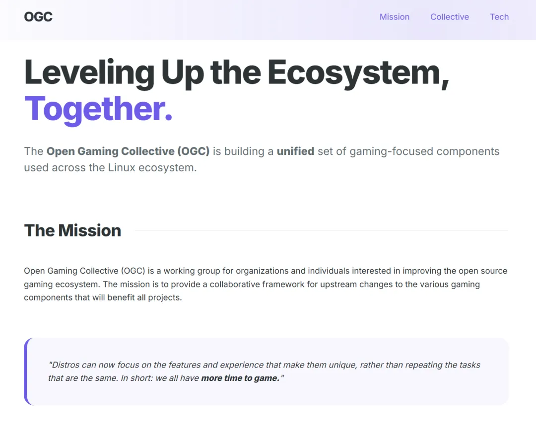 据GamingOnLinux消息,2026年1月29,由Bazzite、ChimeraOS、Nobara等多个知名Linux游戏项目共同发起的"开放游戏联盟"(Open Gaming Collective,简称OGC)正式宣布成立,旨在通过资源共享和协作开发,终结长期以来Linux游戏领域各自为战的局面。打破碎片化困局
