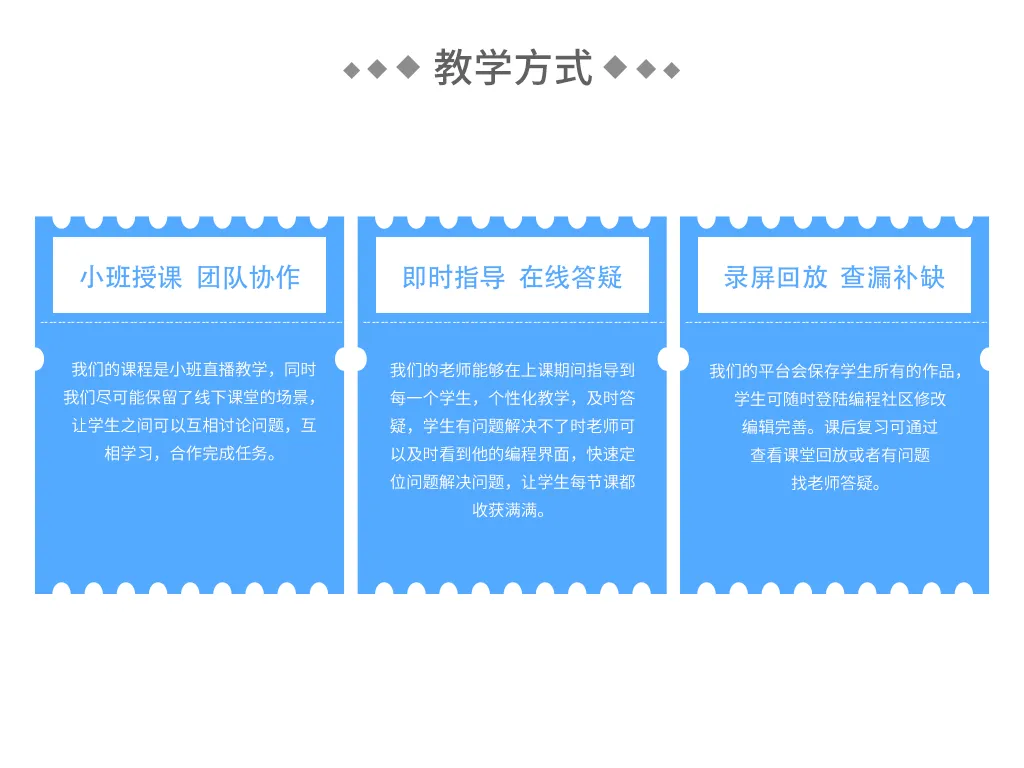 经验丰富的编程老师授课,一对一指导,关注每个孩子的学习进度。