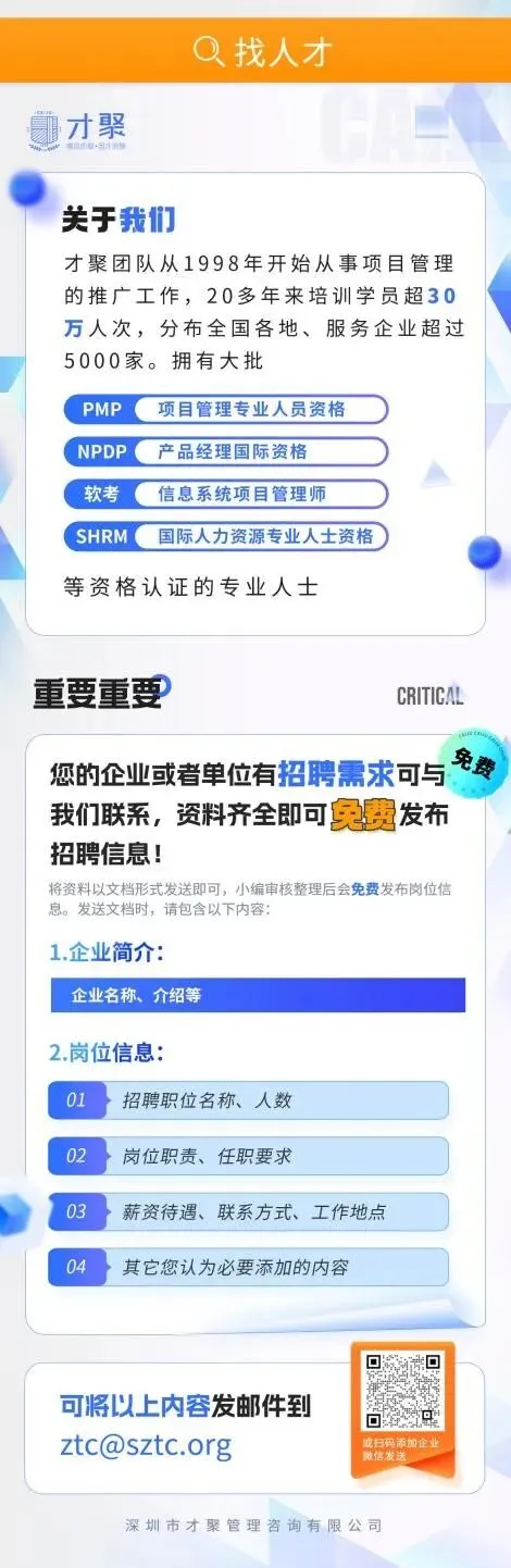 简历投递:ztc@sztc.org,备注【岗位编号+姓名+才聚学员】