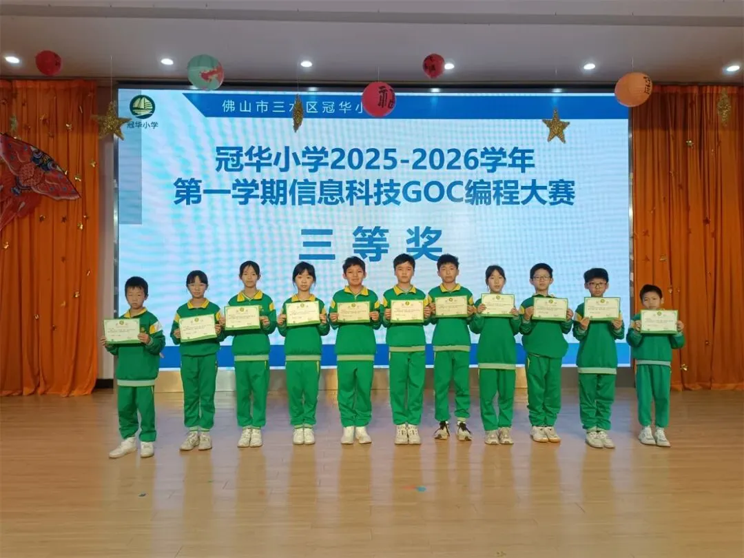 在数字化时代的浪潮中,编程已成为培养学生逻辑思维与创新能力的重要途径。为激发四五年级学生对编程学习的兴趣,夯实 GoC 语言基础技能,深耕逻辑思维培养,搭建创意展示平台,佛山市三水区冠华小学于 2025-2026 学年第一学期成功举办 “代码筑梦 创意无限 ——GoC 编程探索之旅” 主题大赛,让同学们在代码世界中锤炼逻辑、绽放创意。