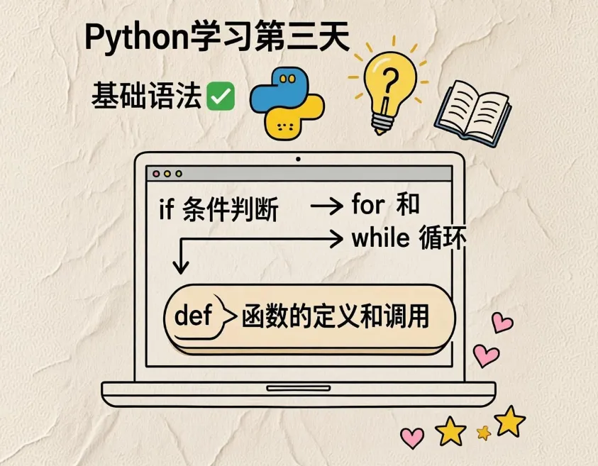今天是学习 Python 的第三天,前面2天学习了基础的语法,今天来学习一下 if 条件判断、for 和 while 的循环,还有函数的定义和调用。