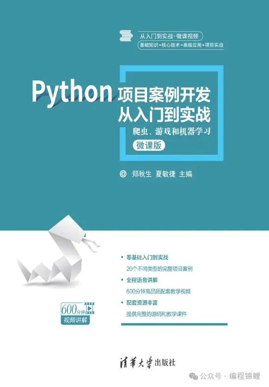 《Python项目案例开发从入门到实战——爬虫、游戏和机器学习》由清华大学出版社出版,郑秋生与夏敏捷担任主编。本书旨在通过实际项目的演练帮助读者掌握Python编程技能,并深入理解如何将这些技能应用于不同的领域。本书特色: