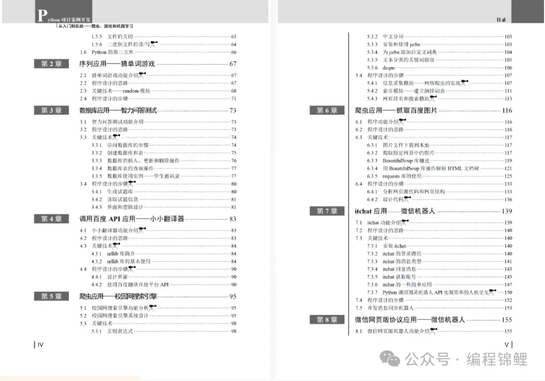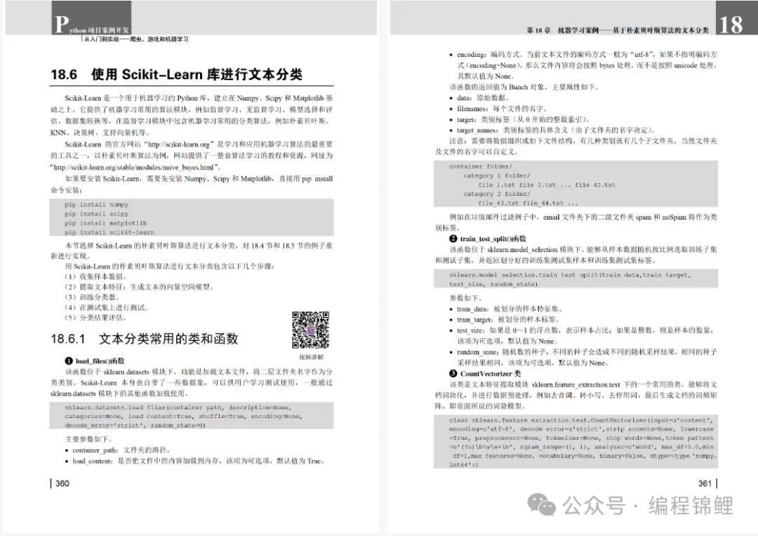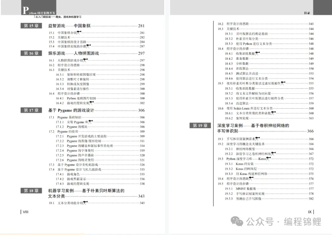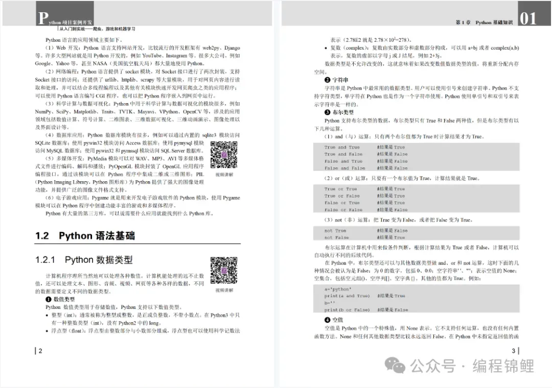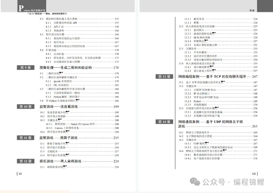 4. 机器学习实践:介绍使用Python进行数据分析与机器学习的基础知识及工具包(如Scikit-Learn),并通过实际案例演示如何利用这些技术解决现实问题。本书适合初学者快速入门Python编程,同时也非常适合有一定基础希望进一步深入学习的读者。通过书中详细解析和项目实战,能够帮助学习者不仅掌握理论知识,还能提升动手能力及解决问题的能力。对于想要进入数据科学、人工智能等领域的人来说,《Python项目案例开发从入门到实战——爬虫、游戏和机器学习》提供了非常有价值的指导。由于篇幅过长,完整版的PDF都给大家整理好了,有需要的小伙伴