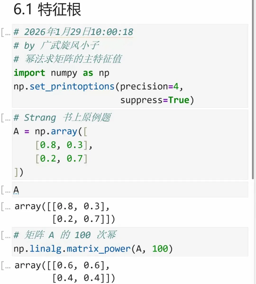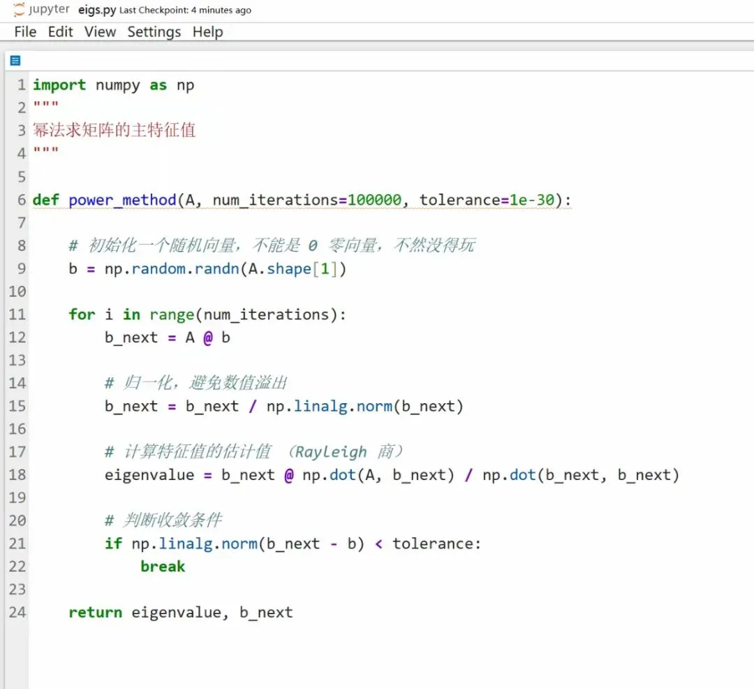 >Python幂法求矩阵的主特征值