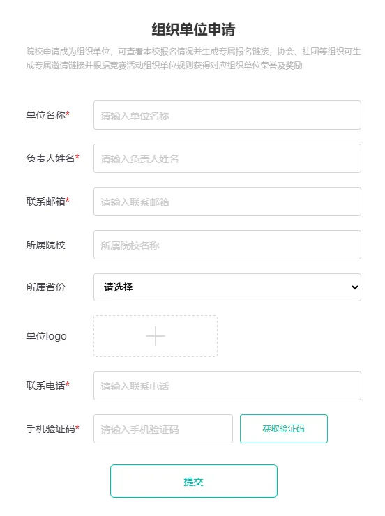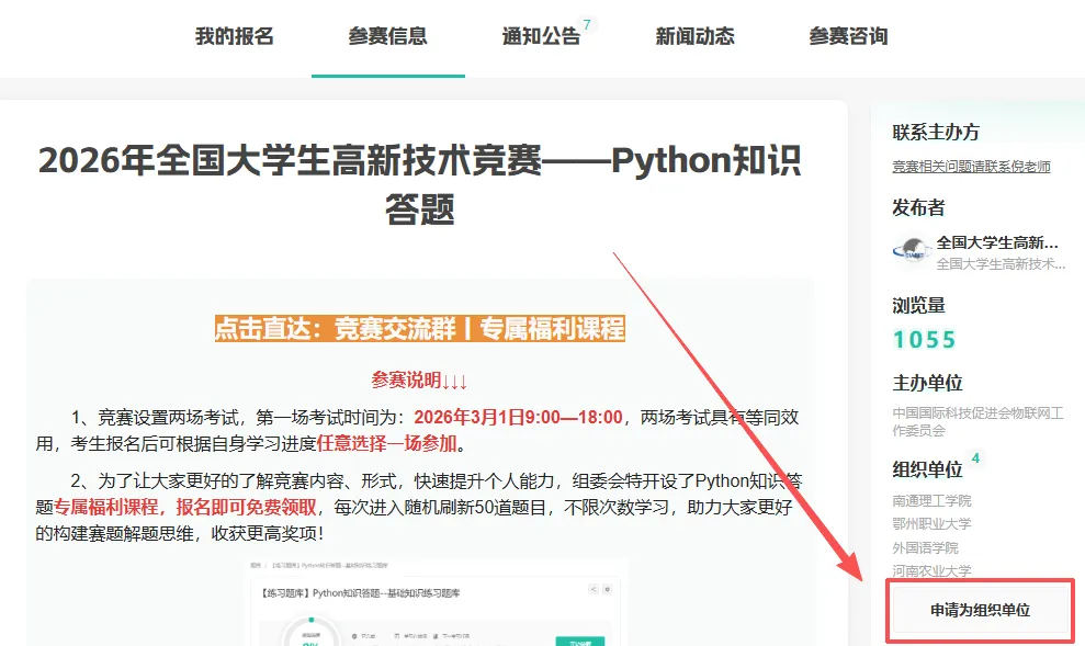或登陆竞赛官网: 在首页点击【申请为组织单位】