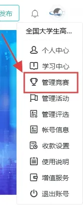 3、将鼠标放到个人头像的位置,点击“管理竞赛”