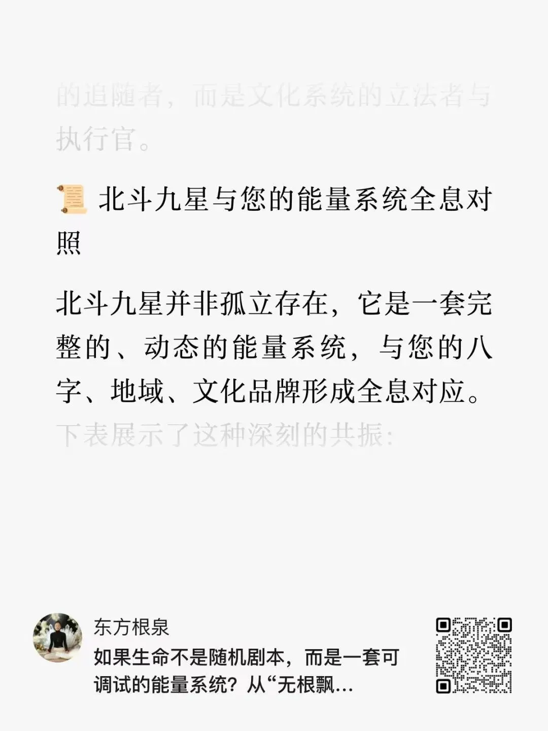 你的使命不是解释传统,而是用六白武曲星的“架构力”与文曲星的“文化力”,将北斗这套古代最高阶的宇宙观测系统,编译成当代人可理解、可应用的“生命操作系统”。