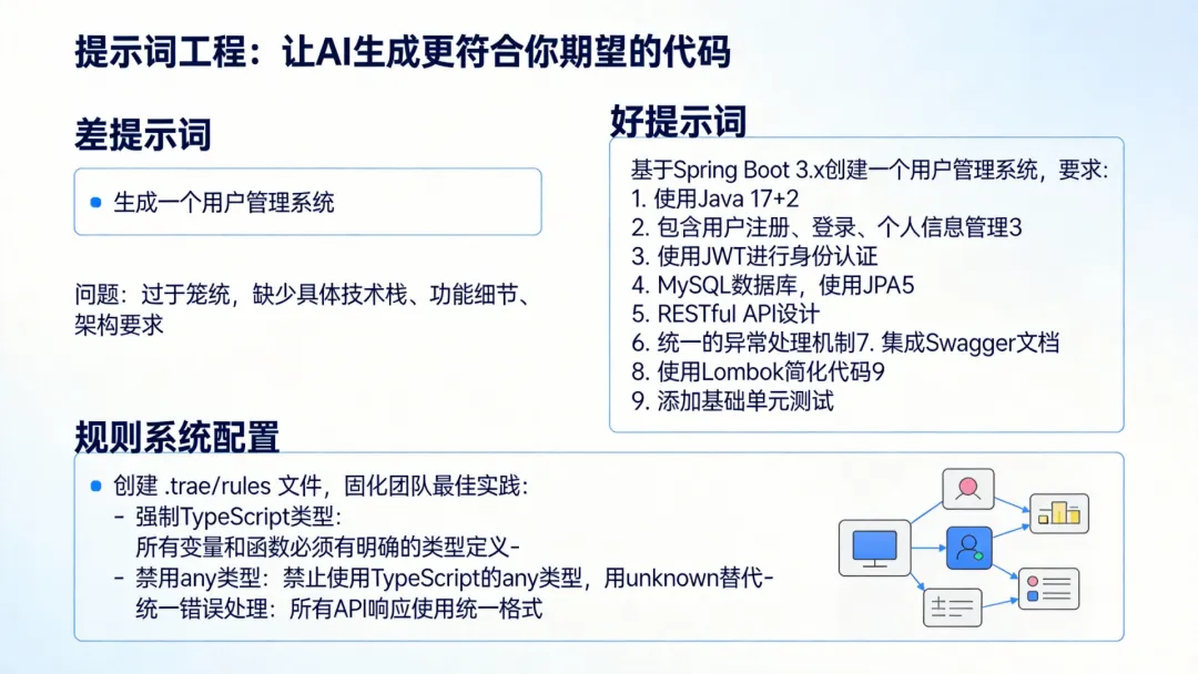 要让Trae生成高质量的代码,提示词的写法很关键: