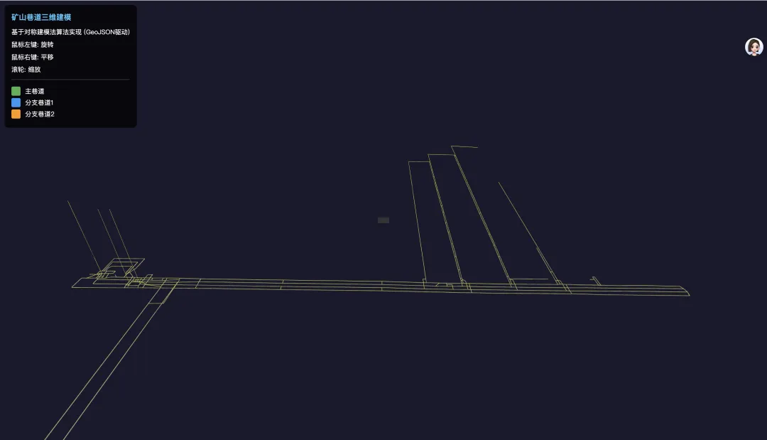 * **中点插值**:在多条巷道汇合点,以交叉中心点为基准,向各分支延伸生成过渡截面。