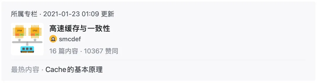 2020 年,我运营过知乎专栏《高速缓存与一致性》,更新结束后,便再无新的技术话题分享。