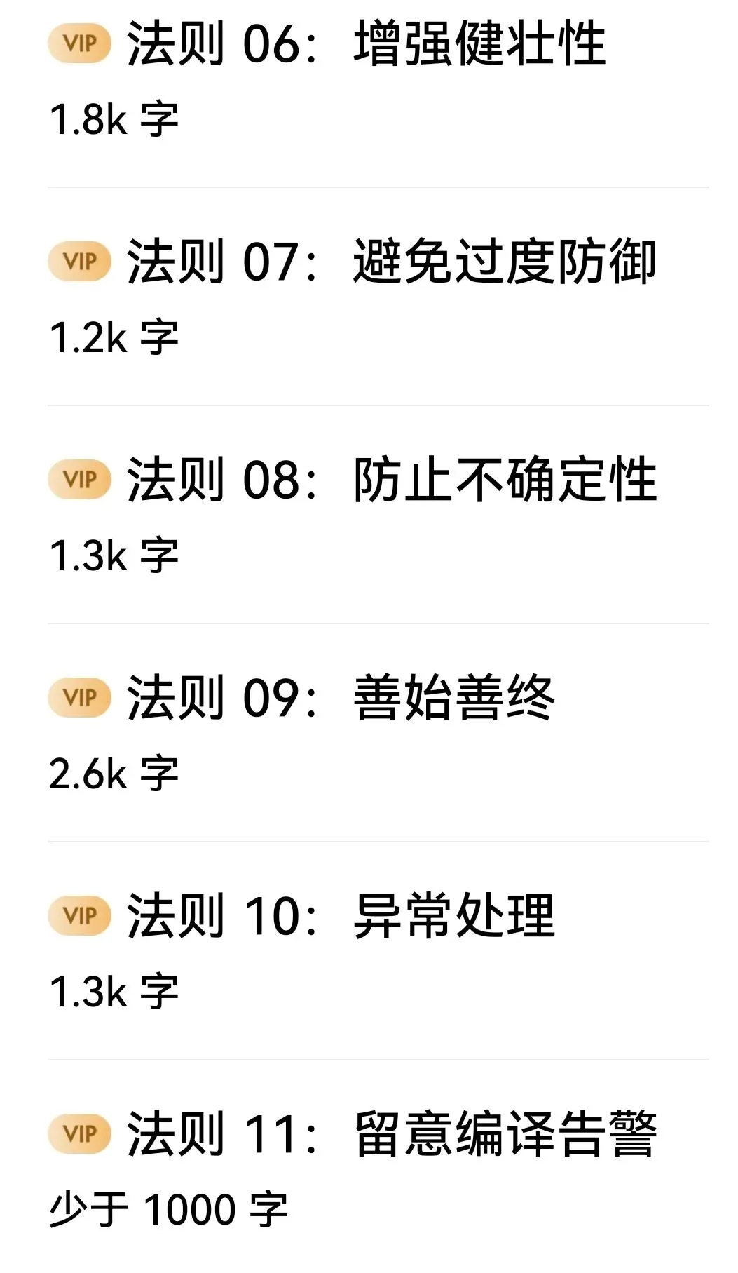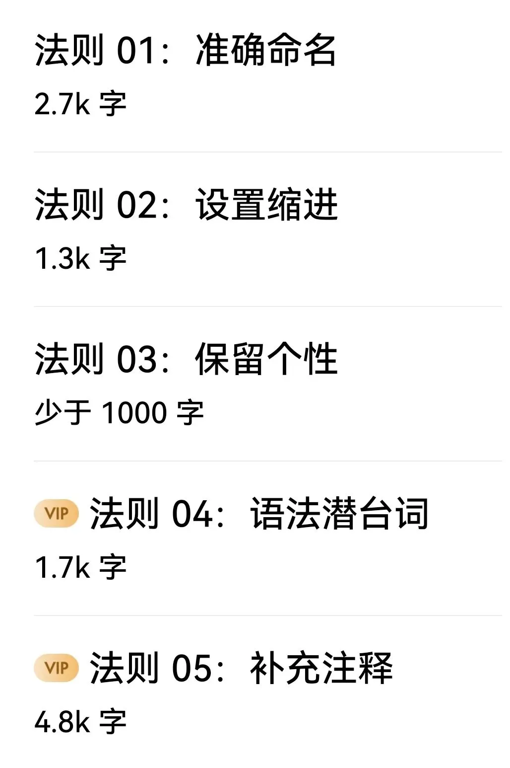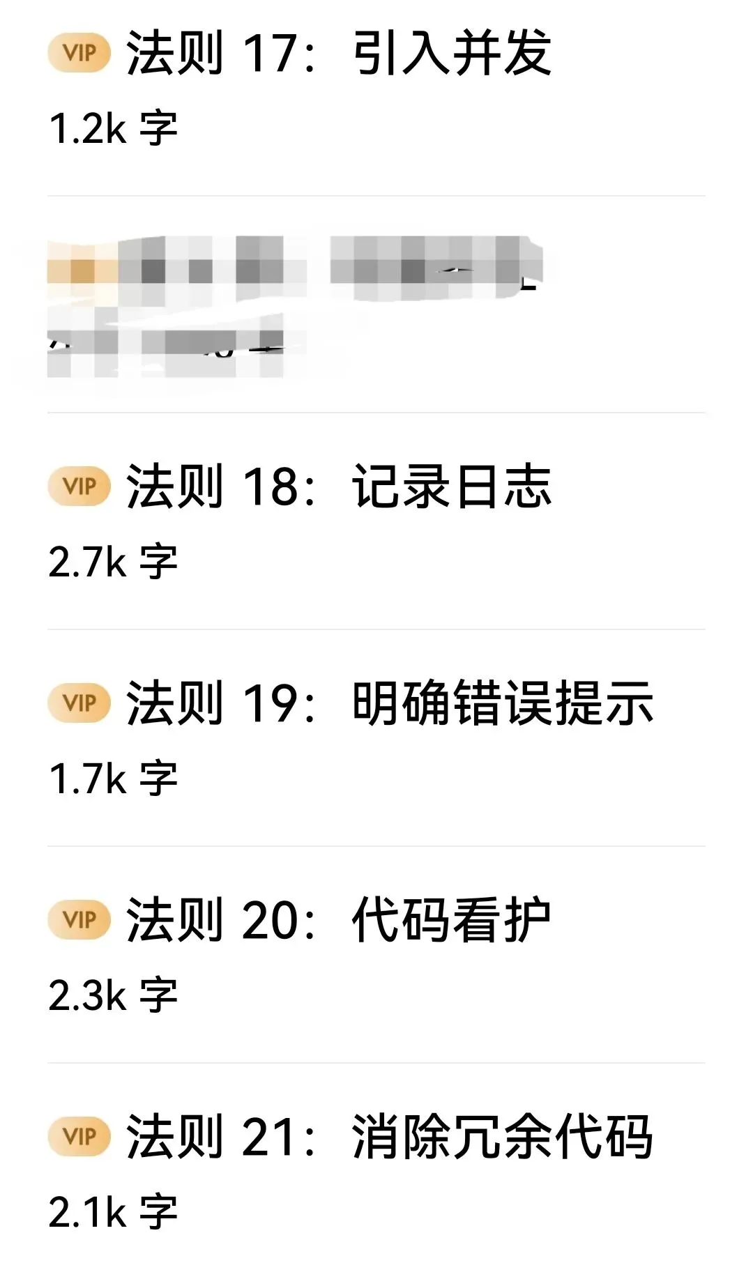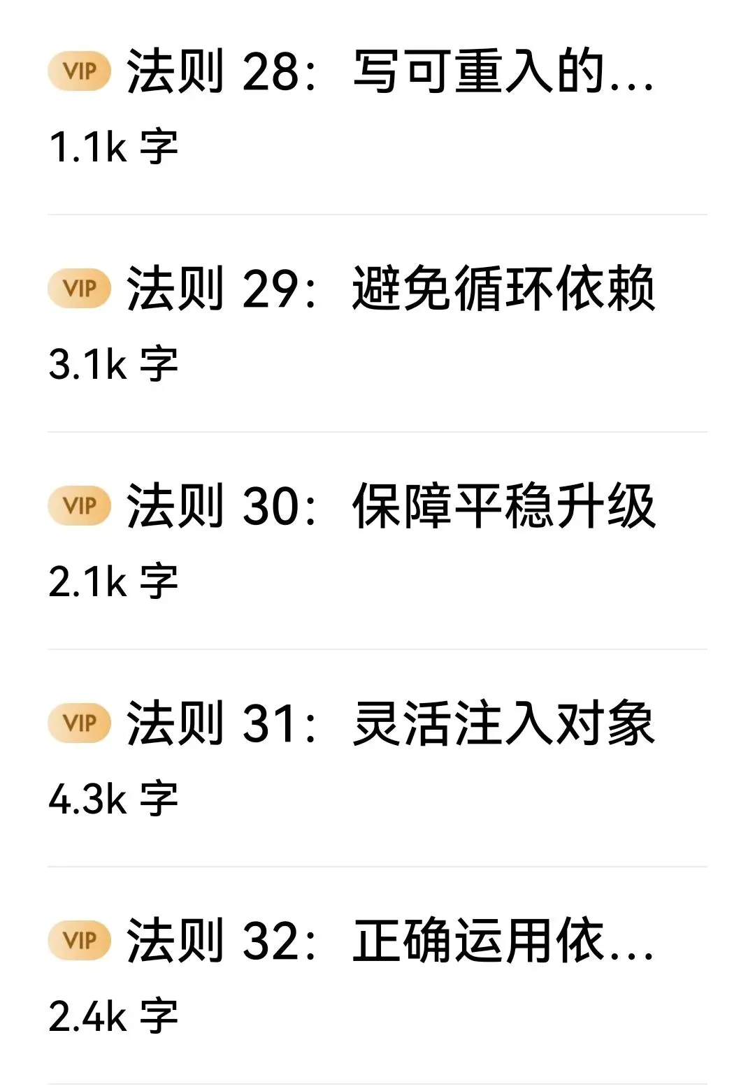 这几天在看《码农修行》这本书,这本书提出了32条优雅代码的法则,截图如下: