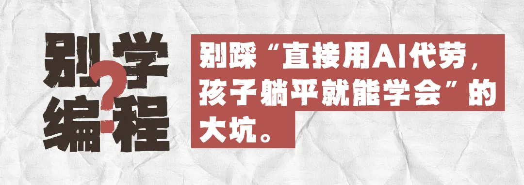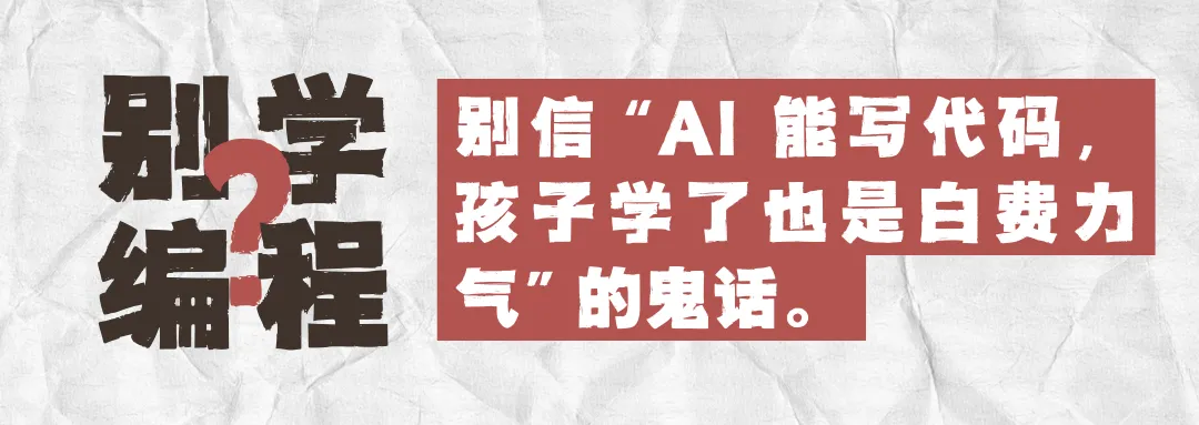 看到这个标题,你或许会心生疑惑:在 AI 席卷各行各业的当下,居然有教育从业者劝孩子放弃编程?