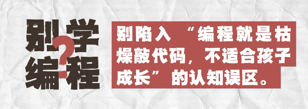 别再被错误认知耽误孩子的成长黄金期,放下对编程的偏见与误解,让孩子以正确的方式走进编程世界,在AI时代牢牢掌握属于自己的核心竞争力。