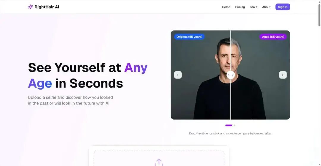 这个网站主要用来做年龄调节,上传一张图片,可以生成不同年龄阶段的效果