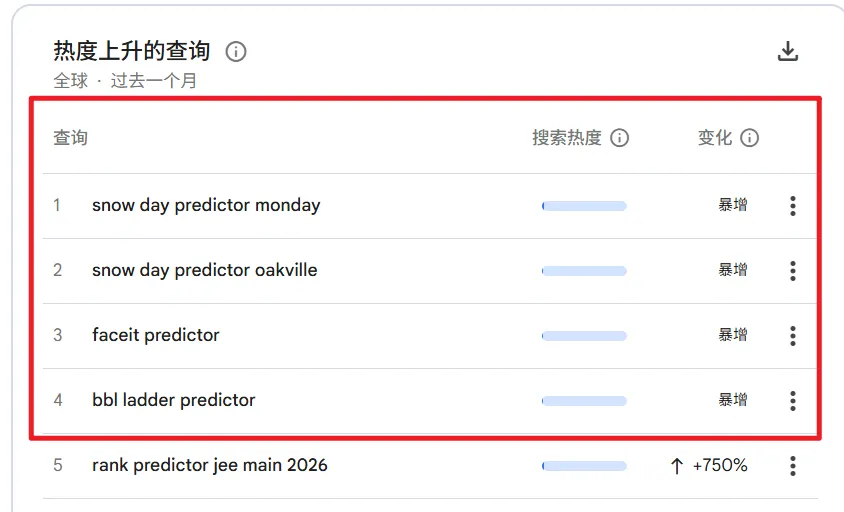 于是通过行动营里教的,阿杰在谷歌趋势上疯狂找关键词