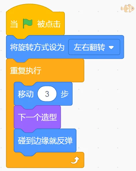 代码是流程图的 “具象化工具”—— 把刚才画的游动逻辑,用 Scratch 的积木拼起来,就能让小鱼真的在海底动起来啦!