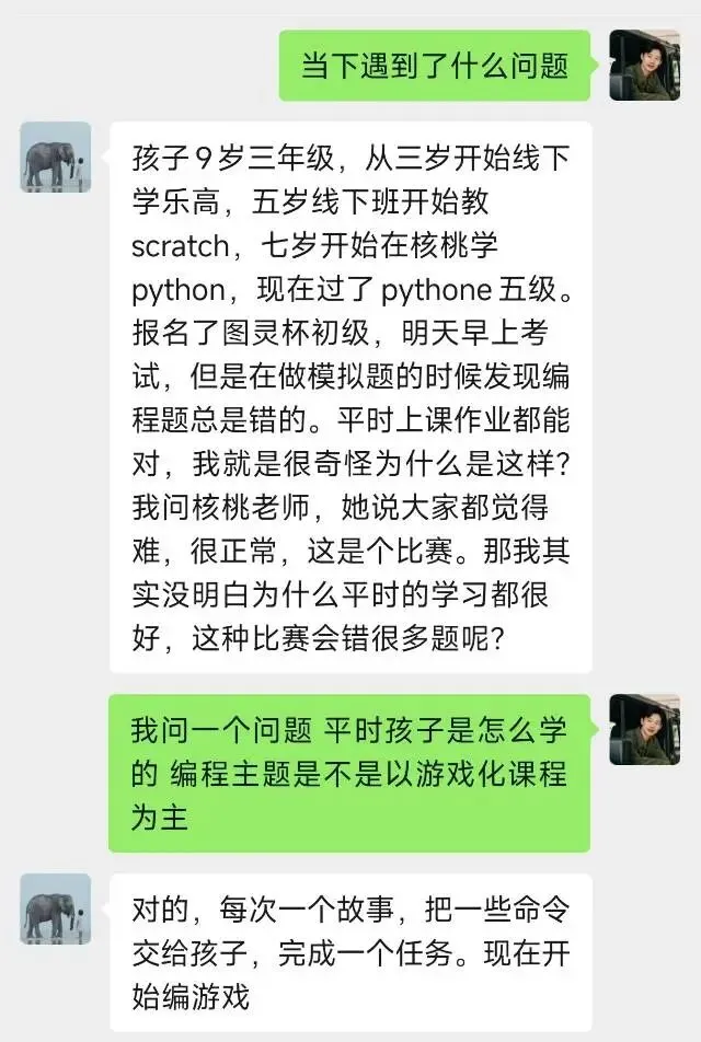 小学生学编程,如果只是随便学学,要不要规划都可以。如果想锻炼孩子的逻辑思维,那一定要关注孩子的成长和编程学习的落地。如果只是听别人说,孩子该学什么就盲目学习,而不考虑孩子的实际情况,到最后就会问题很多。比如,今天的这位家长,孩子的情况一说,我就知道走了很多弯路。说实话,这样的情况我遇到很多很多,到最后基本上后悔莫及。很多家长大概不知道python和C++是大学课程。7岁小朋友学这些课程,大概率是家长听了耳边风,想着为孩子好,实际上把孩子害惨了。1. 学习内容跟孩子能力和智力不匹配,大概率啥也学不到,就是纯玩。2. 游戏化的课程吸引孩子兴趣,目的其实是消耗课时,家长感觉孩子喜欢,实则喜欢游戏罢了。3. 这样的学习方式,起步到锻炼孩子思维的目的,往往会适得其反。同样也提升不了学习能力,于是一出题就错,其实是正常反馈。4. 家长最好给孩子做编程规划,做落地学习计划,盲目的跟随只会消磨孩子,浪费时间。真正的学习不在于多,在于掌握了多少,应用了多少。6. 从长远来看,及时调整是最好的止损。家长如果没有一点头绪,又一味听从毫无逻辑的安排,就是坑孩子。1-4年级家长,有任何编程问题,可以多翻翻本公众号的文章,至少可以明白一二,少走弯路。家长问,为什么小孩子都喜欢ht编程?城市套路深