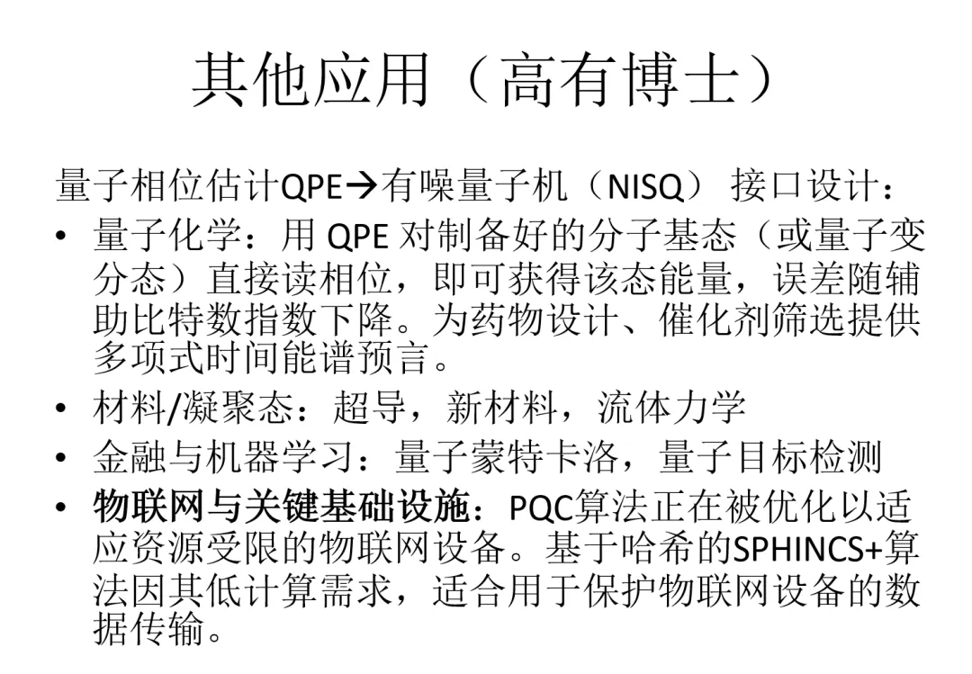 高有博士详细的分析讲解了Shor算法在量子编程特别是密码学里面的各种应用。让大家对Shor及延伸算法充满了想象和好奇,将在药物研发,新材料,流体力学等方面,有新的突破。