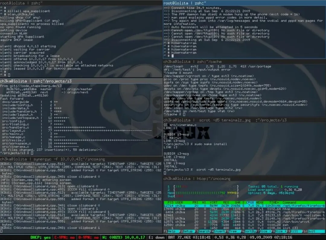 更好的是,平铺式窗口管理器能很好地利用你的桌面空间。