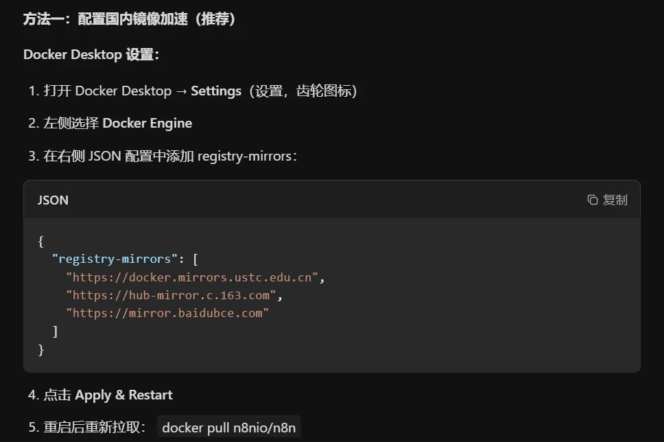 n8n 需要通过 Docker 容器来运行,所以我们首先要安装 Docker。
