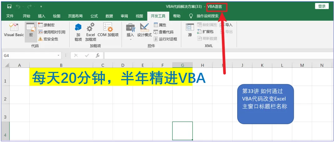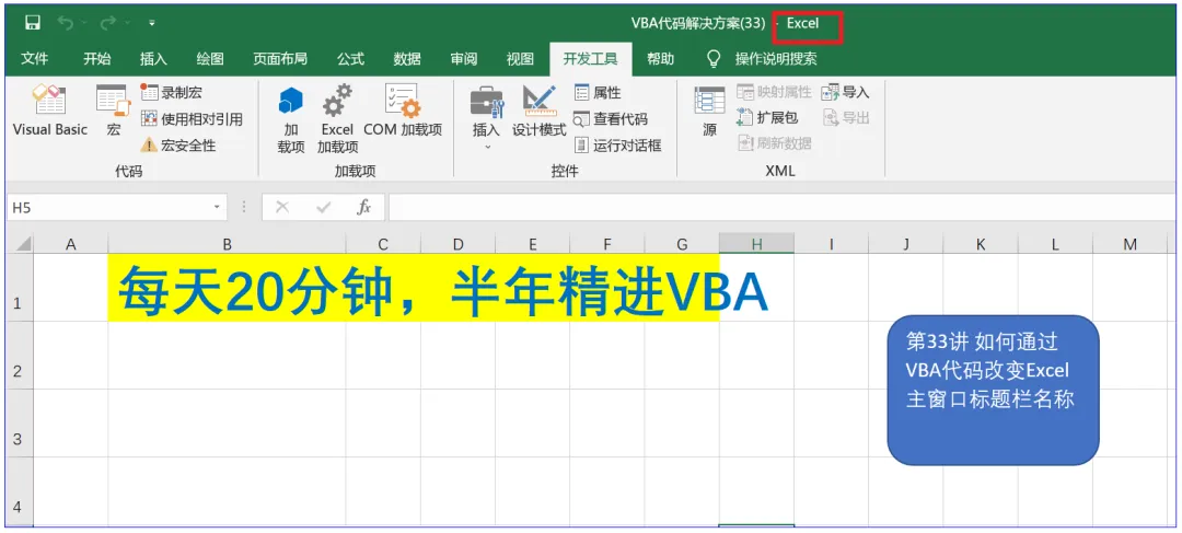 第三十三讲VBA代码改变Excel主窗口标题栏名称