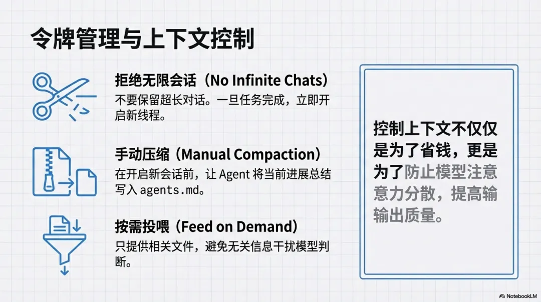 他们的观点是:如果你在与AI进行了几轮交互后仍未得到想要的结果,这通常意味着最初的上下文或任务描述存在问题。此时,继续纠缠只会浪费时间和Token。Isaac Flath生动地描述了这种反面模式:“我听说有些人会把一个Claude Code或CodeX窗口开一整天,就像用ChatGPT一样,让整个对话线程一直延续下去……我认为这是个烧掉大量Token的好方法。”