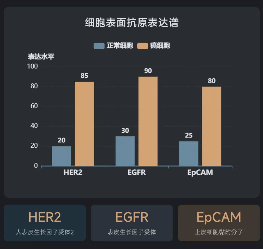 我们身体里的细胞就像一座座城市,细胞表面的各种蛋白质就是城市的"地标建筑"。正常细胞和癌细胞的地标组合是不同的。比如,某个正常细胞可能有地标A和B,而癌细胞可能有A、B和C,或者只有B和D。 以前的治疗方法通常只看一个地标——比如只看有没有B。但问题是,很多正常细胞也有B,这就导致误伤。