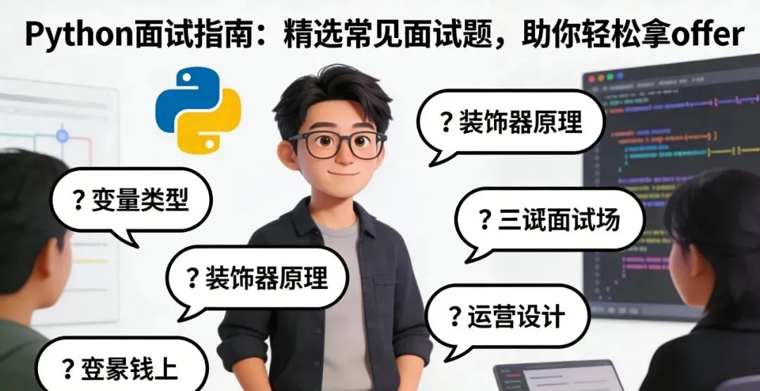 今天,咱们就来聊聊Python里那些面试常客。像什么变量、数据类型、条件语句、循环这些基础知识,肯定得掌握牢固。还有像函数、类、对象、模块这些进阶一点的,也得心里有数。 还会讲讲异常处理,文件操作,列表推导式这些能让你的代码更简洁更高效的"小技巧"。准备好了吗?Let's go!# 变量和数据类型:Python的基石