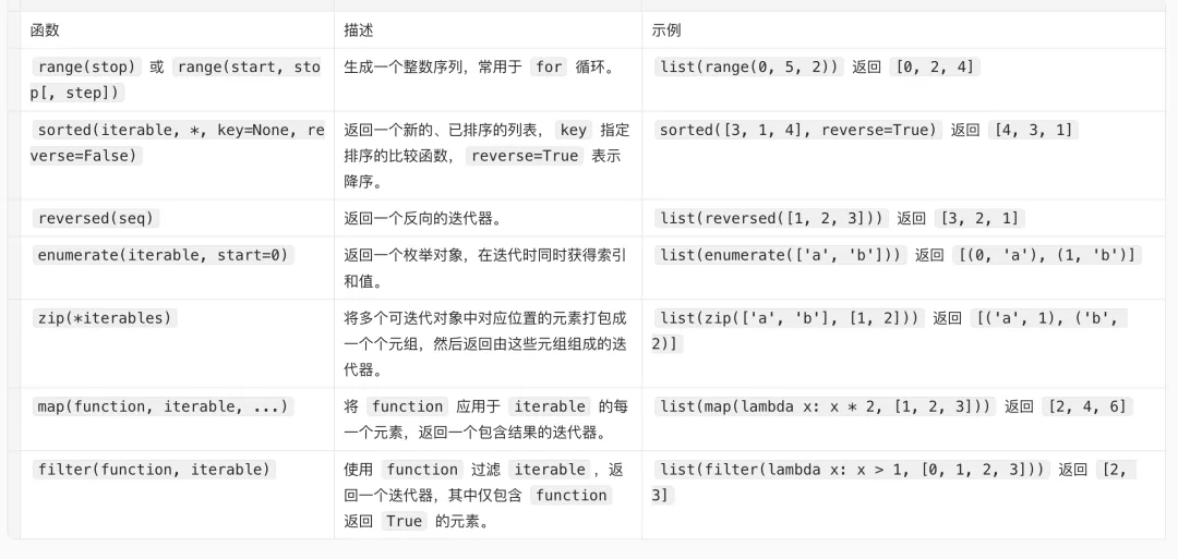 这类函数主要用于处理列表、元组等序列类型的数据。