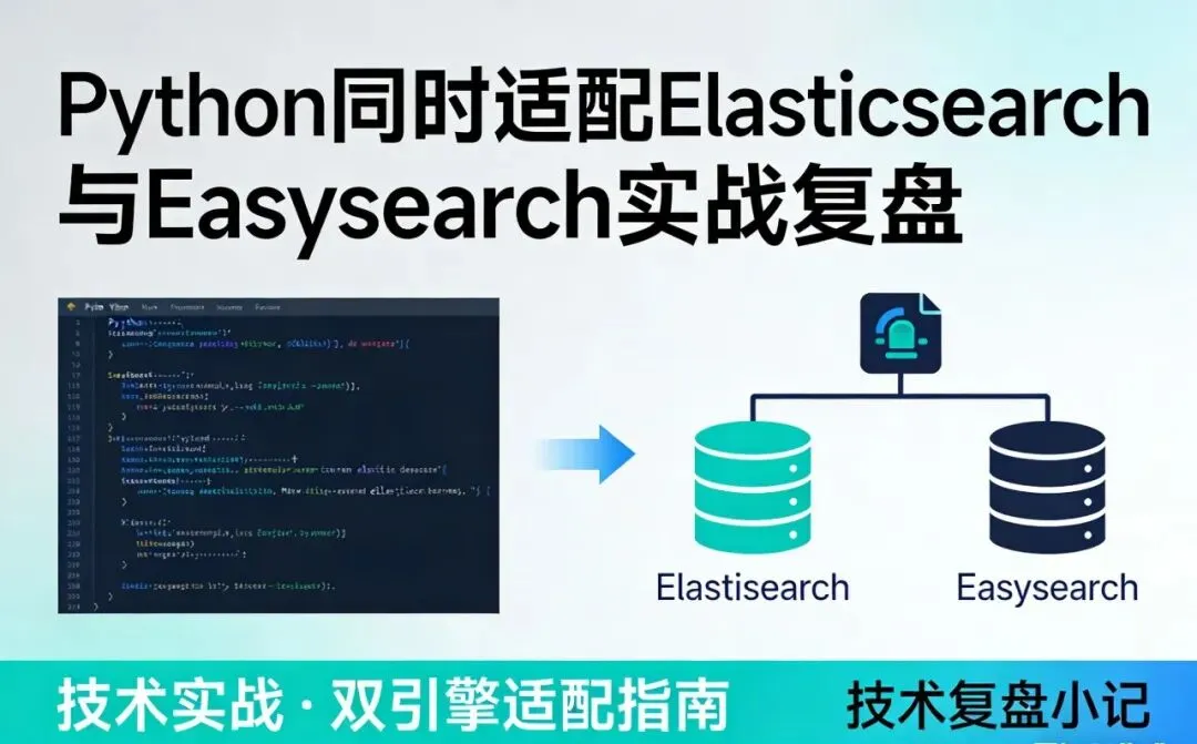 # 1. NumPy 兼容(若使用 NumPy 2.0)import numpy as _npifnot hasattr(_np, "float_"): _np.float_ = _np.float64ifnot hasattr(_np, "int_"): _np.int_ = _np.int64from elasticsearch import Elasticsearchfrom elasticsearch.helpers import bulk as helpers_bulkdefcreate_es_client(host, port, scheme="http", http_auth=None, verify_certs=True): hosts = [{"host": host, "port": port, "scheme": scheme}] kwargs = {"hosts": hosts,"timeout": 30,"max_retries": 3,"retry_on_timeout": True, }if http_auth: kwargs["http_auth"] = http_authif scheme == "https"andnot verify_certs: kwargs["verify_certs"] = Falsetry: client = Elasticsearch(**kwargs)except TypeError:# 某些 7.x 版本参数不同 kwargs.pop("verify_certs", None)from elasticsearch import RequestsHttpConnectionimport urllib3 urllib3.disable_warnings() client = Elasticsearch( hosts=hosts, connection_class=RequestsHttpConnection, http_auth=http_auth, use_ssl=True, verify_certs=False, timeout=30, )ifnot client.ping(): client.info() # 兜底return client前端/配置中只需区分 product: "elasticsearch" 或 "easysearch",后端都用同一套 elasticsearch 7.13.1 客户端即可。