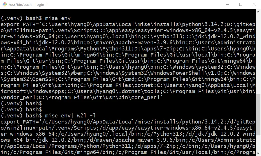 echo "C:\Windows" | python w2l.py -l# 输出: /c/Windows