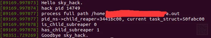 下面我们看看insmod sky_hack.ko hack_pid=14749的输出: