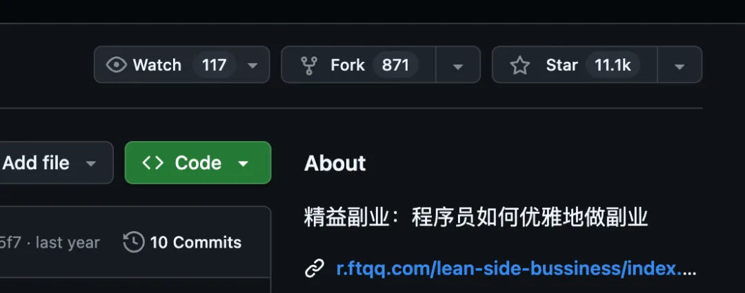 Github 上的 Star 数 11k+,还是很受关注,毕竟这年头,咱们做开发的不仅要防脱发,还得防失业,35 岁危机悬在头上,谁还没个 Plan B 的焦虑?