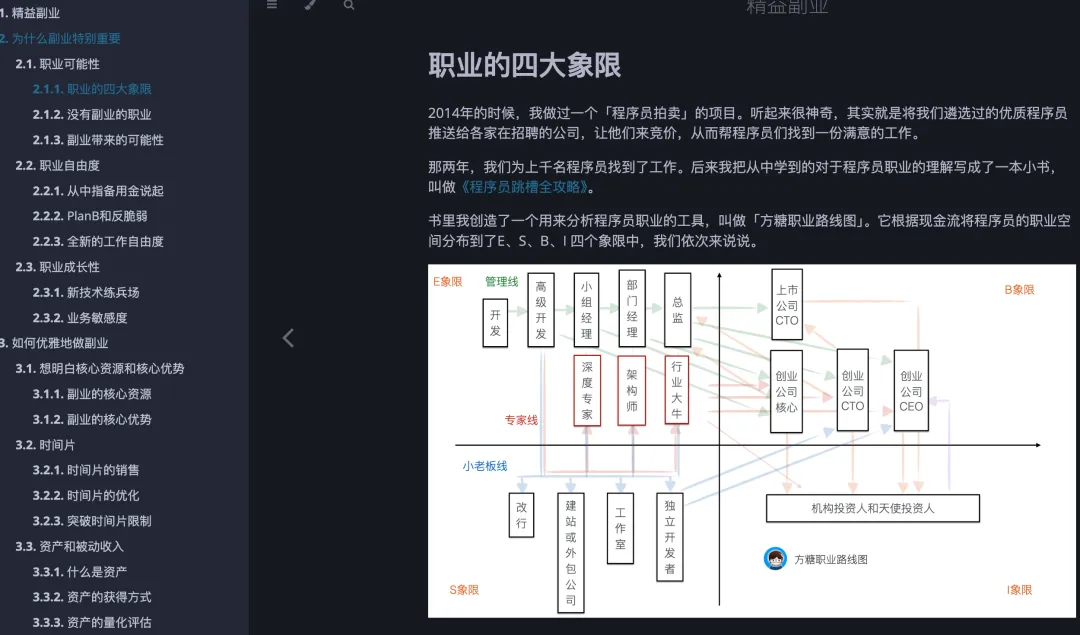 今天给大家安利一个能把你从技术自嗨里拉出来的清醒剂,程序员搞副业的避坑圣经 —— lean-side-bussiness,中文名《精益副业:程序员如何优雅地做副业》。