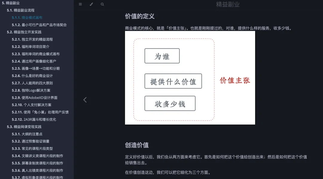 三、精益副业方法论把精益创业方法重写为个人副业流程:商业模式画布、最小可行产品、产品市场契合。