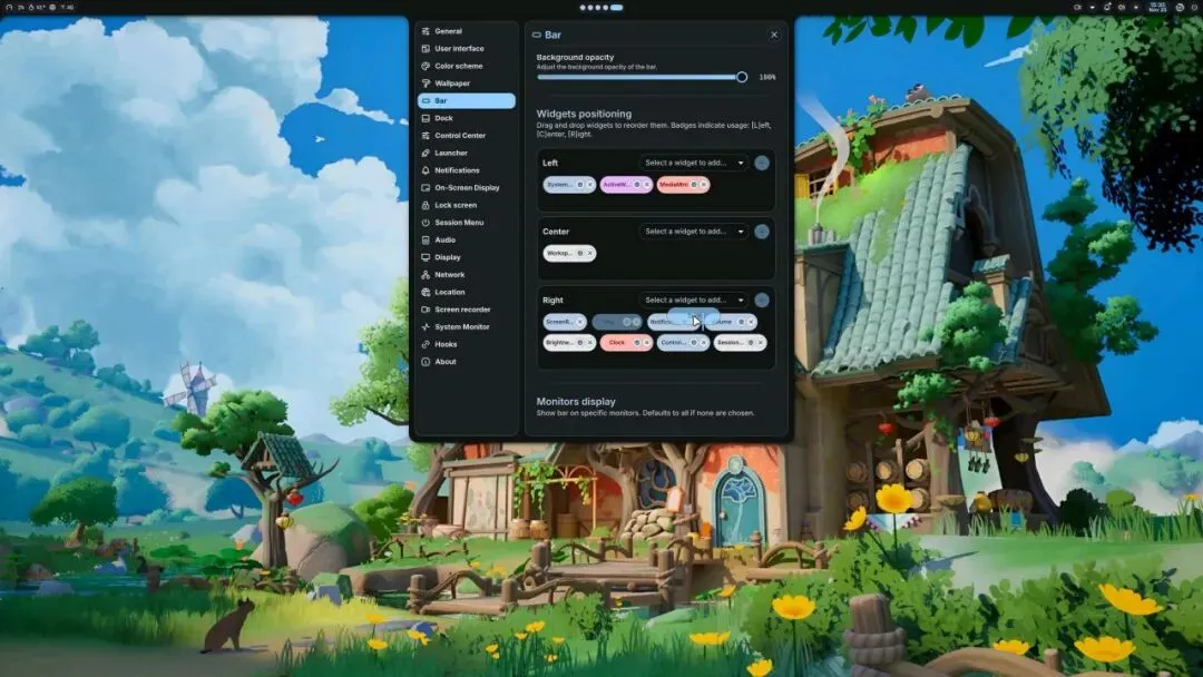以前我们要搞个好看的桌面,得怎么弄?先装个 Waybar 做状态栏,还得手写 CSS 调边距;然后装个 Mako 或 Dunst 处理通知;再搞个 Wofi 做启动器,Swaylock 做锁屏……这还不算完,你还得保证这四五个软件的主题色调一致,稍微动错一个配置文件,整个桌面就崩了。