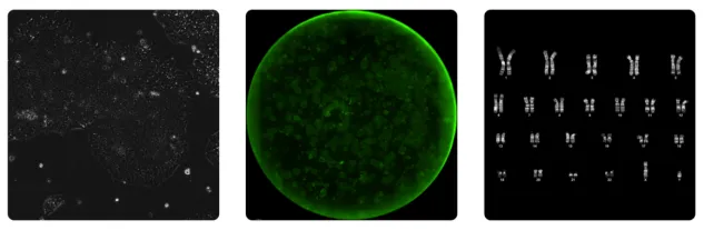 诱导的 iPSC 可分化为内、中、外三个胚层,多代传代后核型正常、基因组稳定,符合细胞治疗标准。