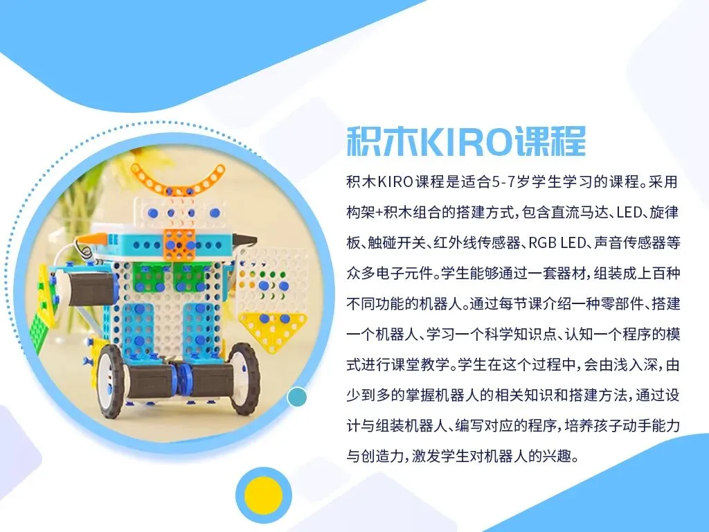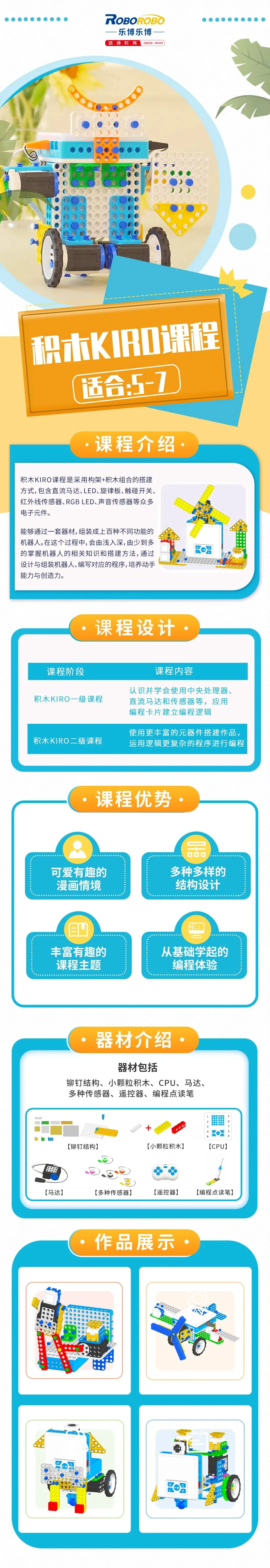 积木 KIRO 是乐博乐博青少儿机器人编程教育专为5-7 岁儿童设计的实物化编程课程,作为乐博乐博阶梯式课程体系的核心一环,它完美衔接 3-5 岁大颗粒电子积木启蒙与 7 + 岁单片机课程,通过搭建 + 编程 + 调试的完整闭环教学,让孩子在动手实践中建立编程逻辑与工程思维,为未来科技学习奠定坚实基础。