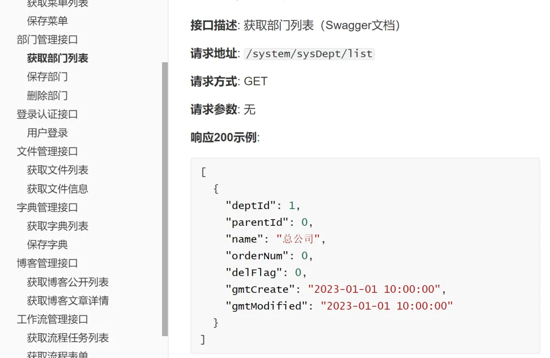 每个接口用二级标题,包含:接口描述、请求地址、请求方式、请求参数表格(字段/类型/必填/说明)、响应 200 示例、常见错误码。给每个接口一个http请求和响应示例