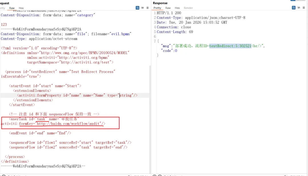 漏洞点:流程上的表单formKey参数可控,导致产生漏洞