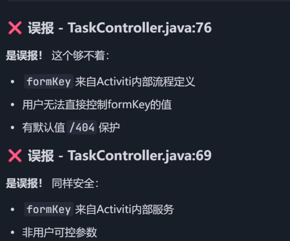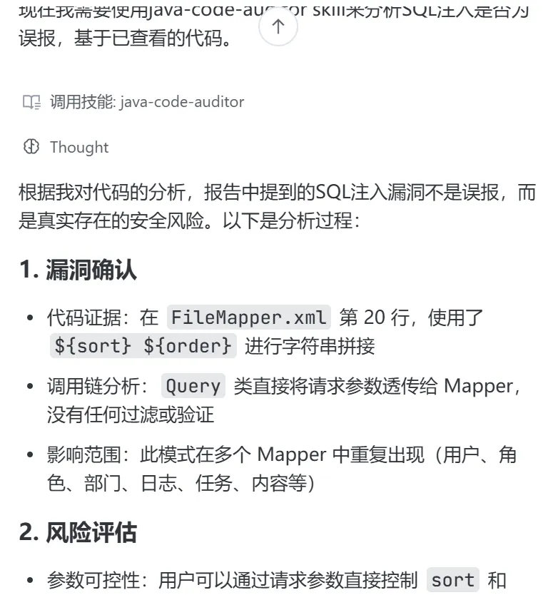 提示词:请使用java-code-auditor这个skill帮我分析 代码审计报告.md 中的XX漏洞是否为误报