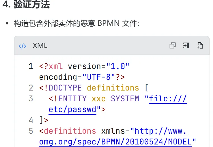 实际上,最后给xml解析的方法是BpmnXMLConverter().convertToBpmnModel,该方法无法解析外部实体。(默认只解析正常业务的字段,并不是常见的把xml的文件一起遍历解析了)