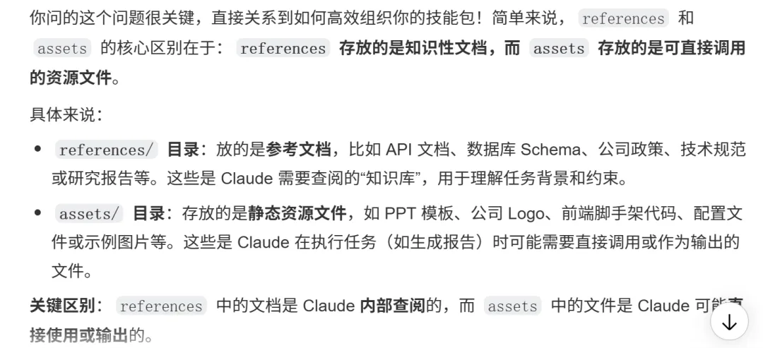 注意:不需要生成scripts/(可执行脚本这个结构)、需要生成references文件夹,