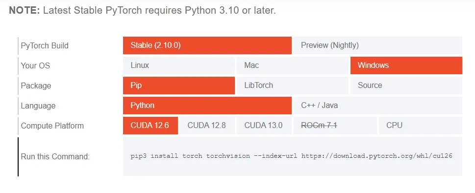 pip3 install torch torchvision --index-url https://download.pytorch.org/whl/cu126